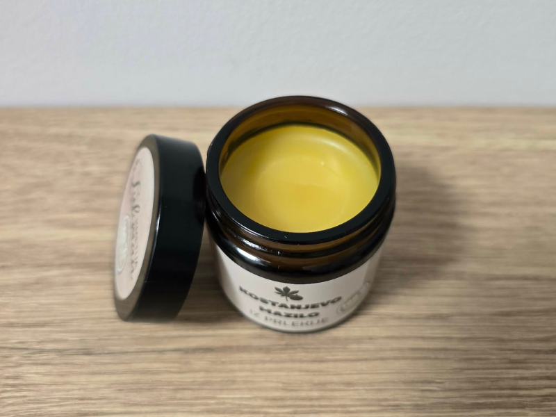 sončnično olje, oljčno olje, čebelji vosek, plodovi divjega kostanja, cvetovi ognjiča